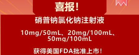 近日,普利制药收到美国食品药品监督管理局(FDA)的批准通知:硝普钠氯化钠注射液三个规格10mg/50mL、20mg/100mL、50mg/100mL获批上市,这标志着公司具备了在美国销售硝普钠氯化钠注射液的资格,这也是普利制药今年在美FDA获批的第三张制剂批件!